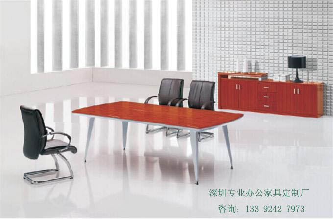 時尚會議桌基 材:E1級達歐洲環保標準基材(目前國內辦公家具行業板式基材標準較高的),此基材用原木壓縮顆粒成型,甲醛含量小于1.4MG/L,抗彎性能強,不易變形。